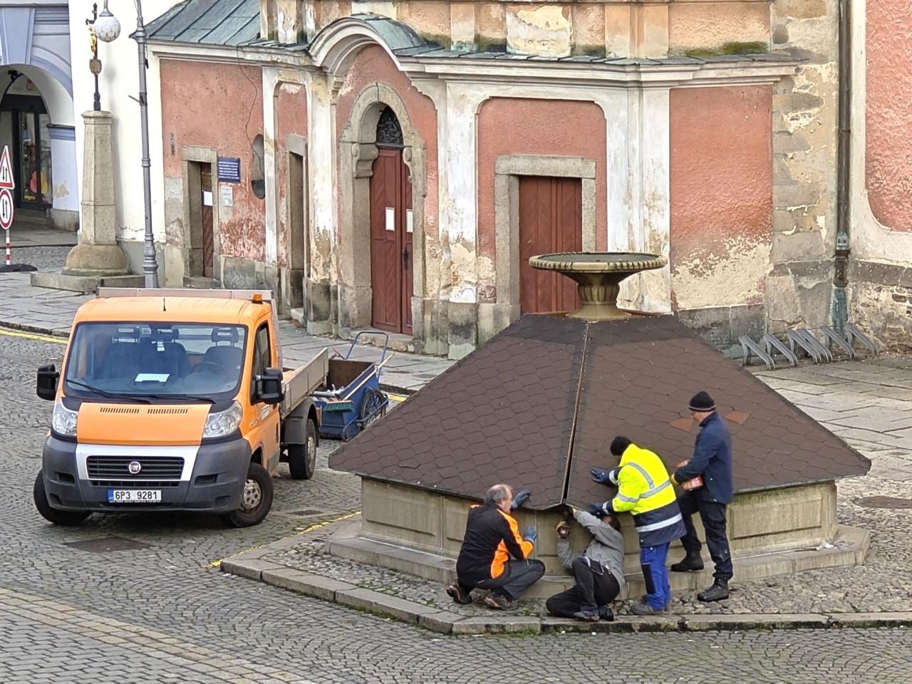 V loňském roce byly opraveny na kašně spáry, aby nedocházelo k průsakům vody.